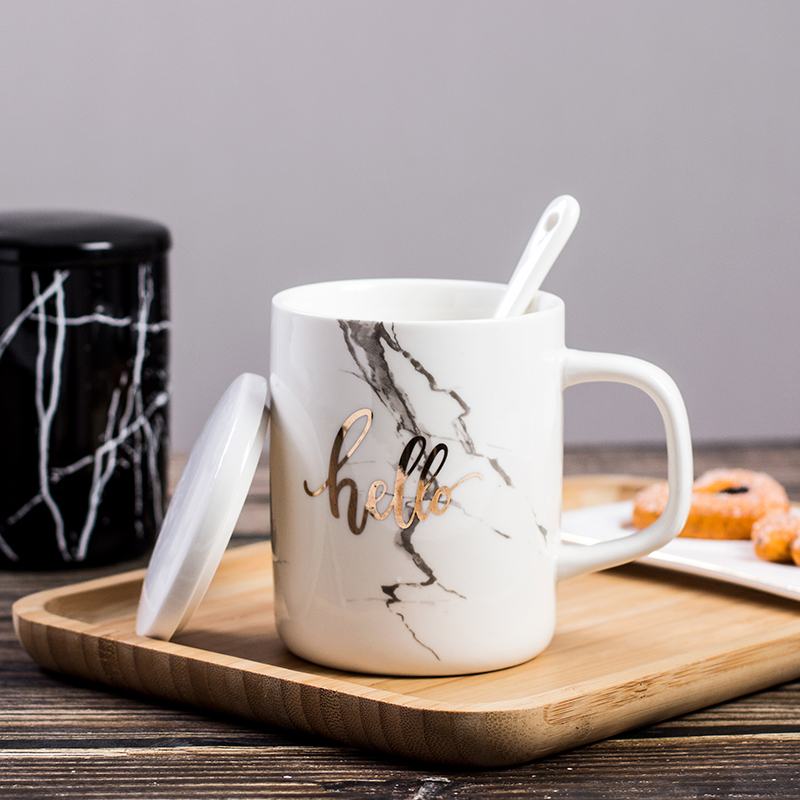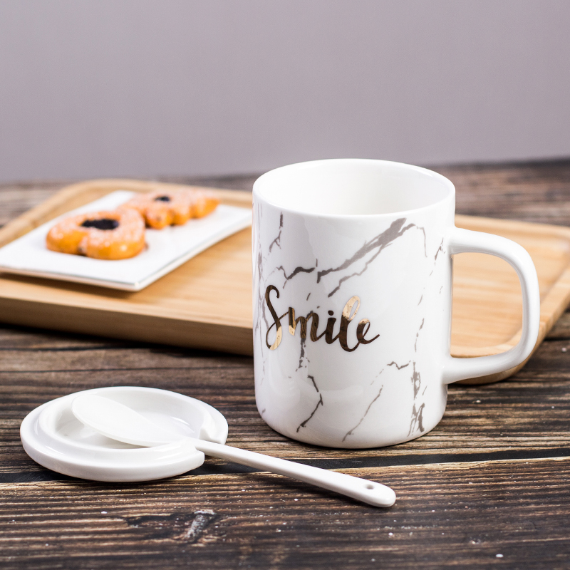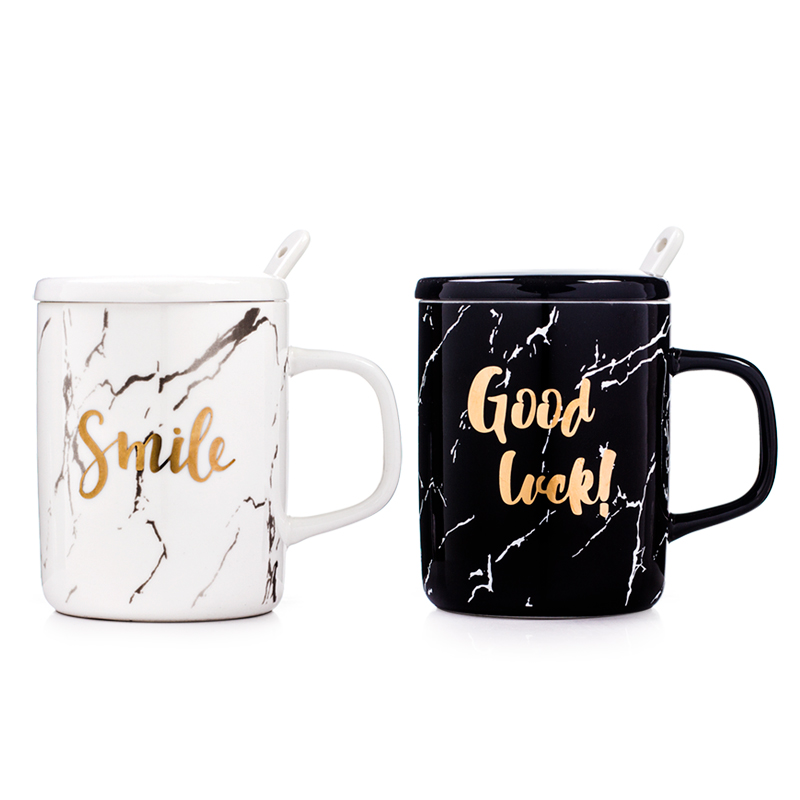 Original Marbled Teacup Ceramic mug Office cup with lid spoon Large capacity couple models
