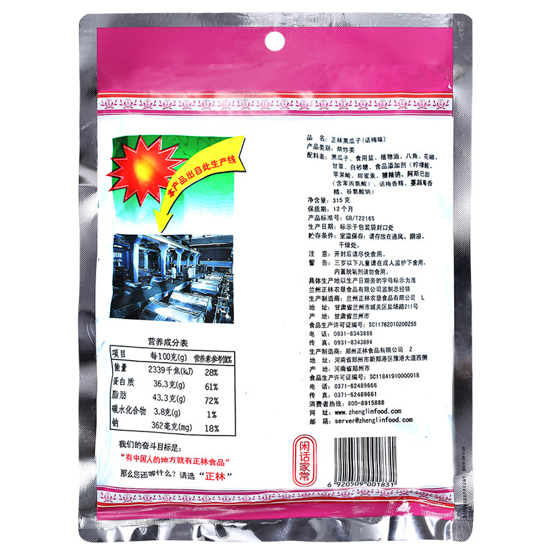 Zheng Linsi melon Dialect Plum Taste Sauce Original Taste Black Melon Seeds 3A Bagged Casual Zero Food Products 315g * 2 bags