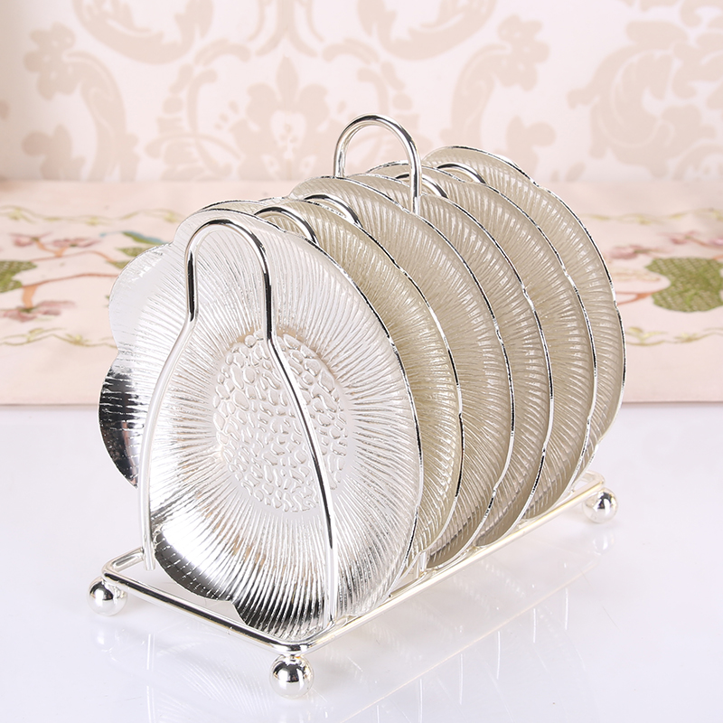 European-style retro silver-plated gold-plated metal coaster pattern insulation pad creative Japanese tea drag snack saucer mosaic saucer