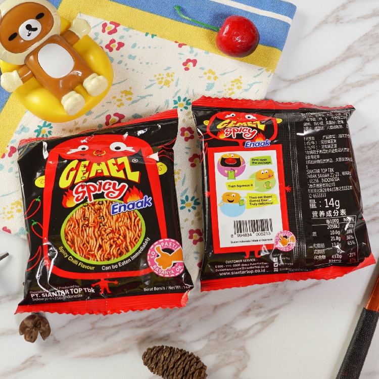 Indonesian imports Gemez Enaak Extra spicy flavored Chicken Fried Chicken Pastry Noodles simply face 14g Single shoulder bag