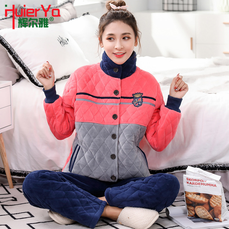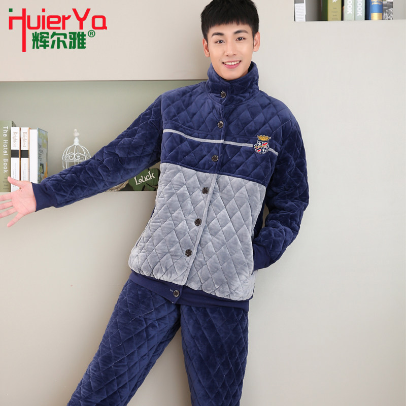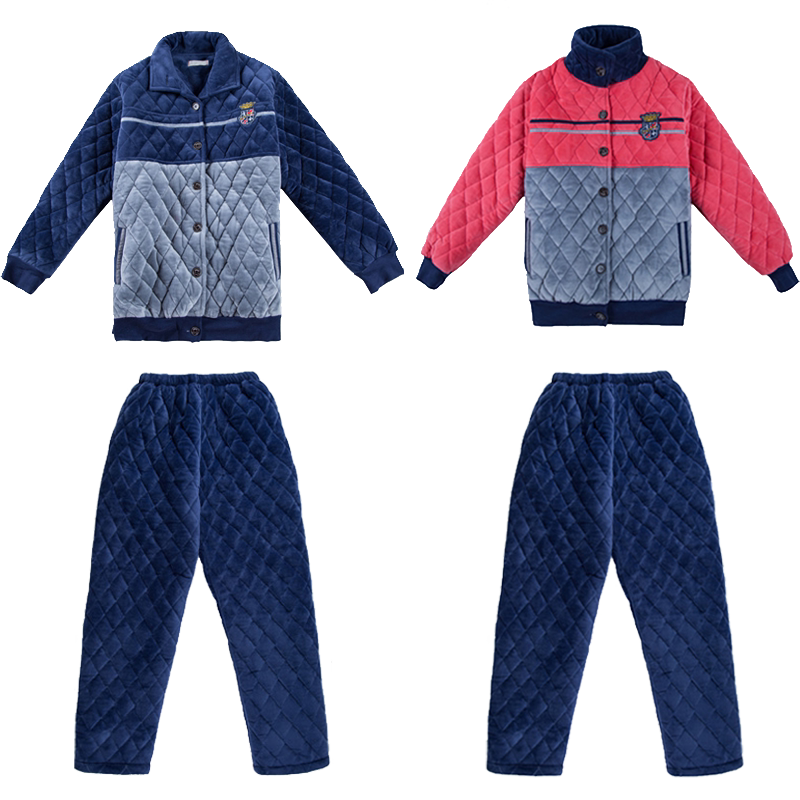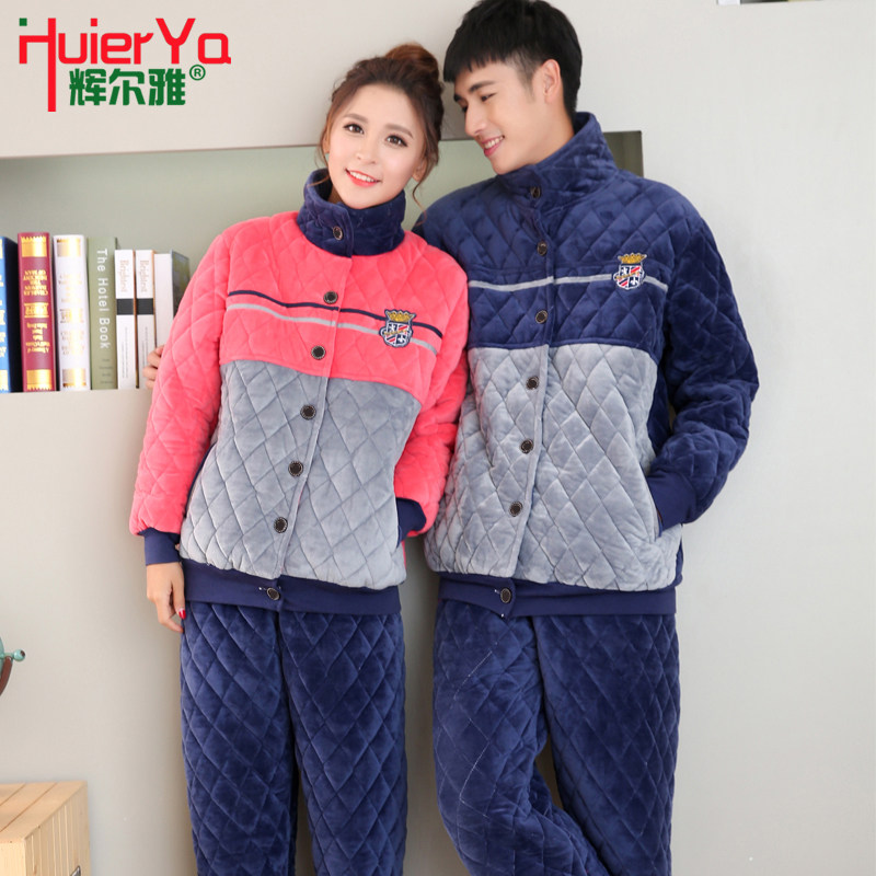 Coral Fleece Clip Cotton Lovers Pyjamas Winter Warm Three-layer Thickened gushed male and female winter-style flange suede padded jacket