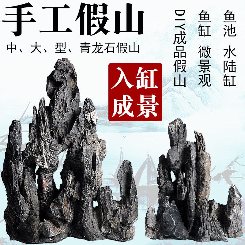 Finished Qinglong stone false mountain fish tank aquarium fish pool building scenery decoration flowing water diy adhesive fake mountain cloud stone mountain view
