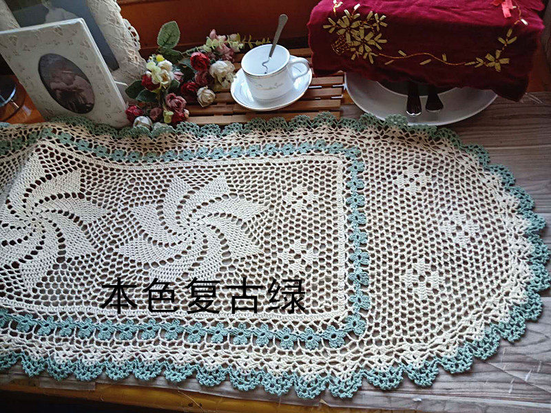 Foreign trade exports to Europe and the United States handmade crochet color hook table flag cover decorative towel Oval special