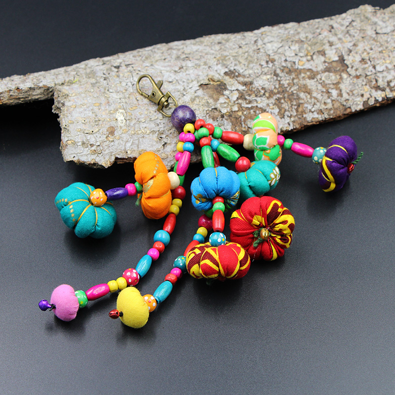 Ethnic Wind Handmade Pumpkin Bag Hang Cute Creative Key Button Cloth Art Hanging Ornament Birthday Annual Meeting Cartoon Gifts
