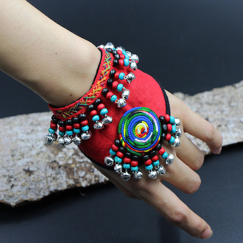 Yunnan cloth artisan handmade female handwoven hand-decorated Yunnan Lijiang ethnic wind protection wrist retro bracelet cotton linen bell