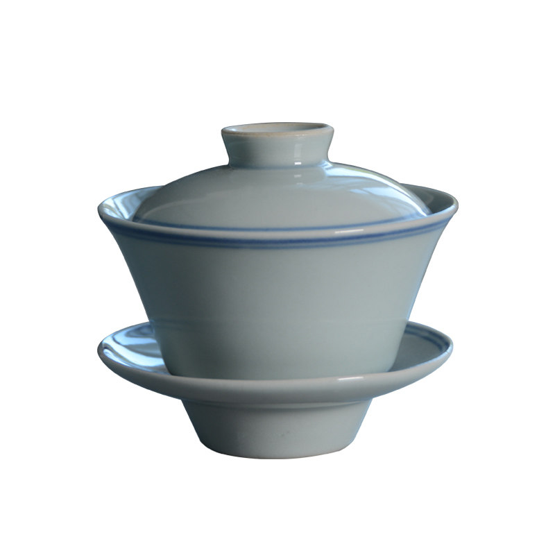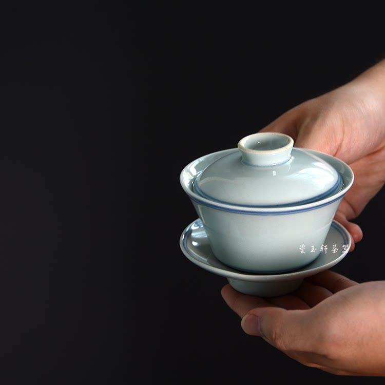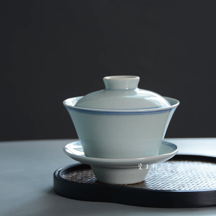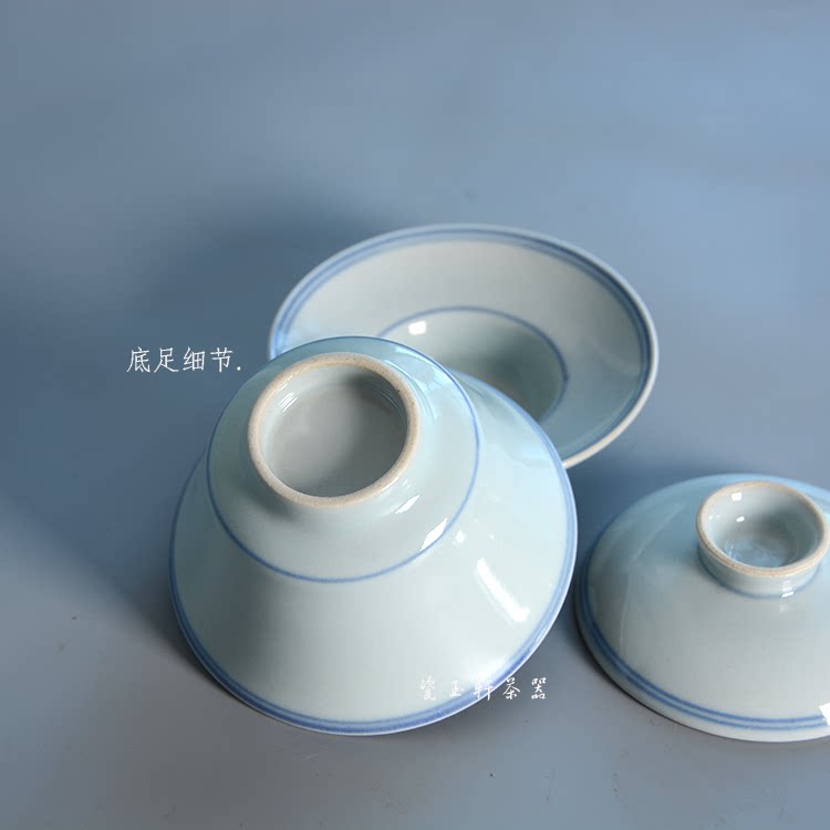 Jingdezhen porcelain janxuan ceramic kung fu tea tool ancient kiln hand-drawn blue flower double line basalt three to cover a single bowl