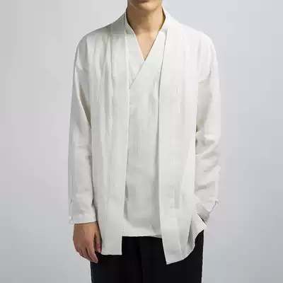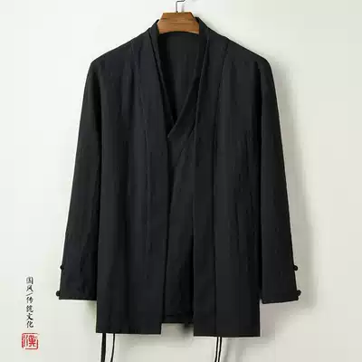 Chinese style flax improved Hanfu men's clothing Autumn Spring vintage cotton men's long sleeve Chinese Tang costume coat Green
