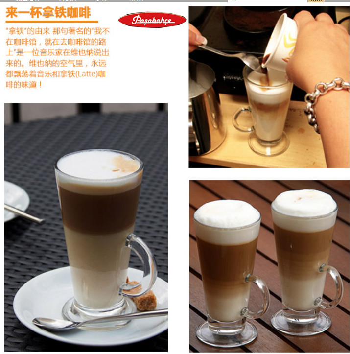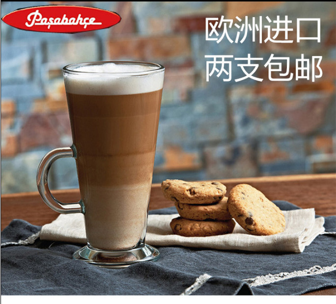 European imported pasabahce glass latte coffee cup tempered milk cup with milkshake cup juice cup