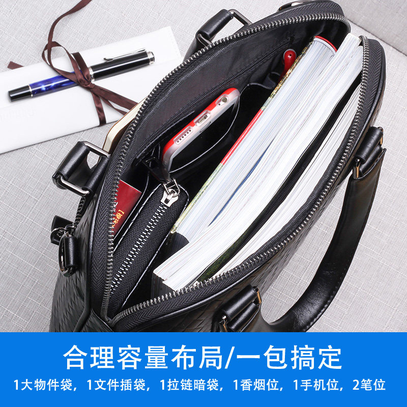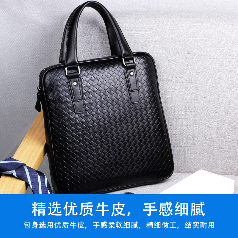 Genuine Leather Men's Bag Weave Pattern Men's Shoulder Messenger Bag Leather Men's Business Casual Portable Briefcase Backpack