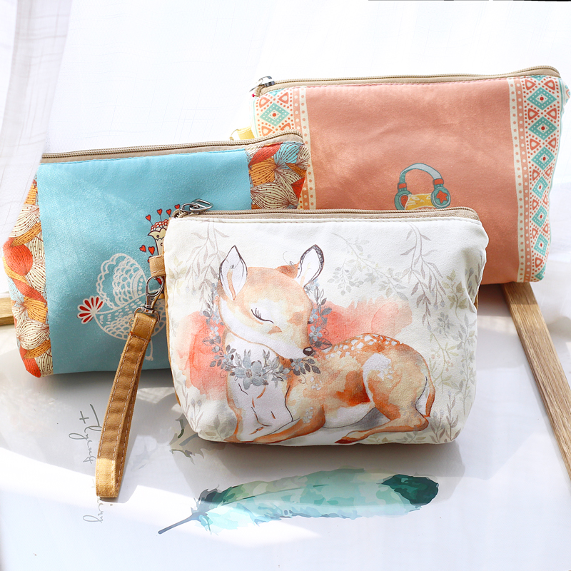 Cosmetic bag small portable Korean simple student cute girl soft girl net red Wrist bag coin purse single zipper