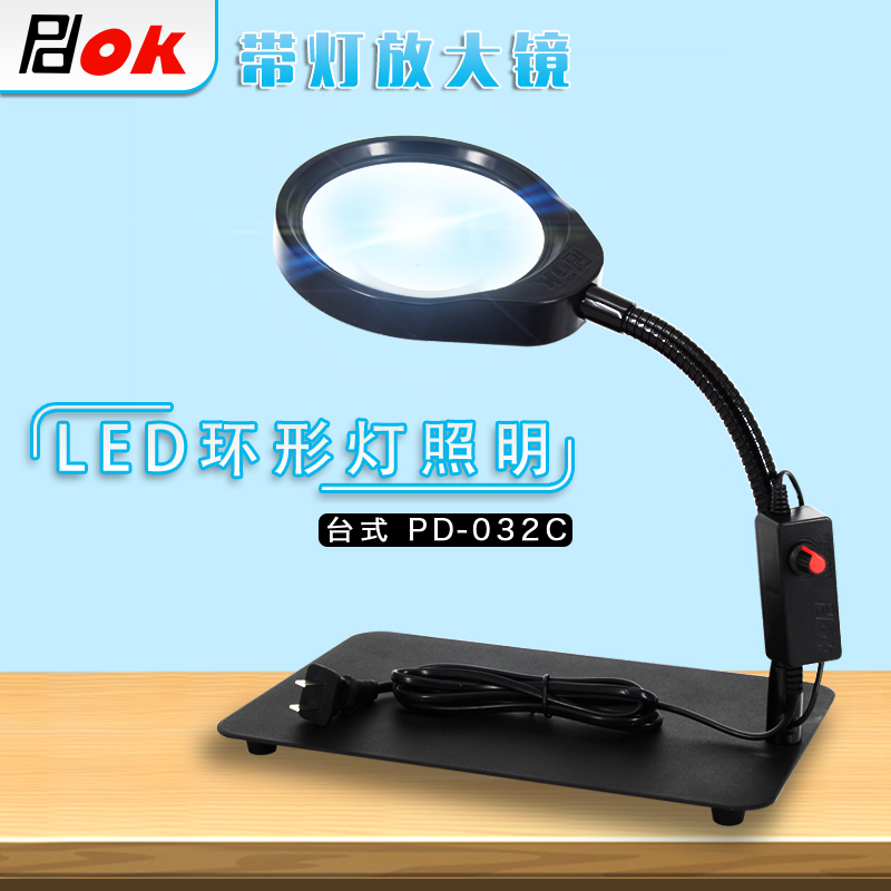 Desktop magnifier with lamp PD032C HD 3 times 5 times 8 times 10 times 20 times PCB mobile phone repair Welding printing Elderly reading painting Textile engraving Desktop LED magnifier Table lamp