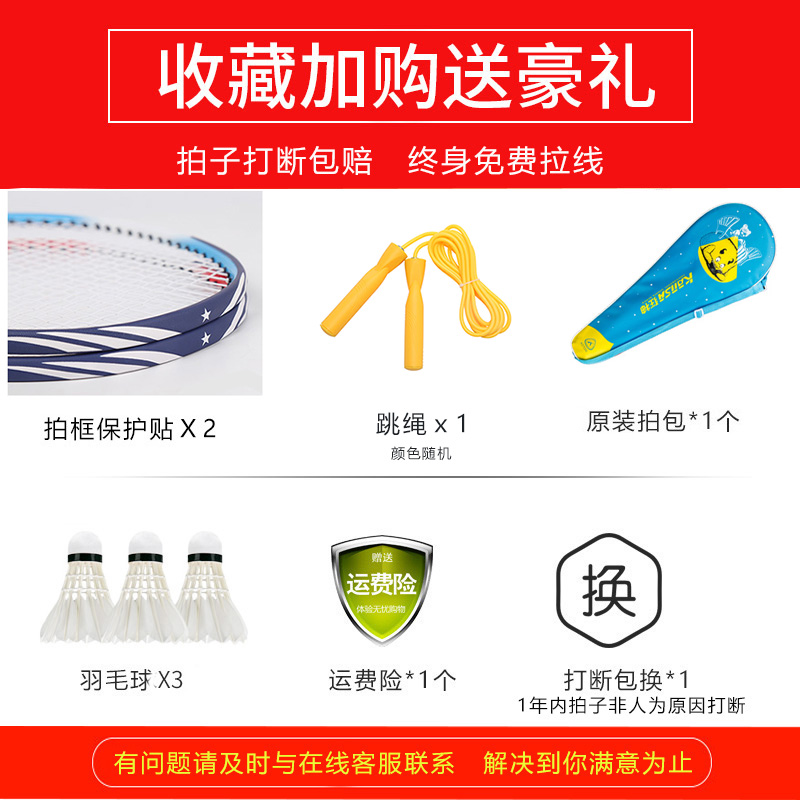 Mad God children's badminton racket Durable double-shot primary school feather racket Ultra-light racket badminton suit