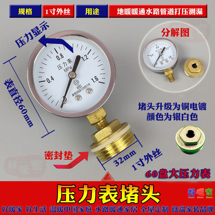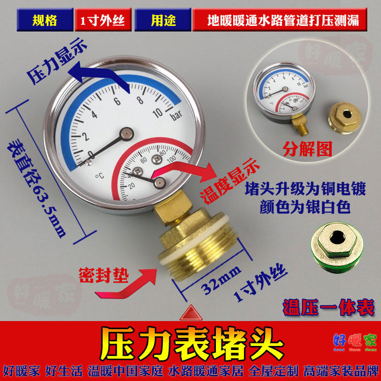 Pressure gauge + plug Thread down pressure gauge + plug Thread in the back large pressure + table plug thermopressure integrated pressure gauge + plug single pressure gauge Thread in the back single large pressure gauge 60 dial Single temperature pressure gauge Plug special sealing ring 2 installed