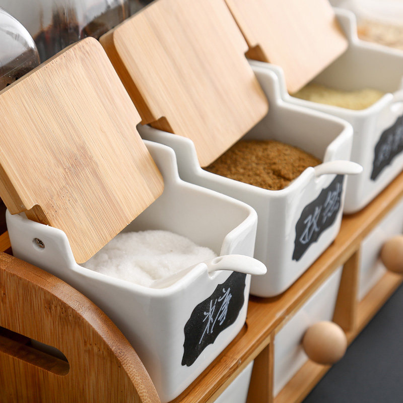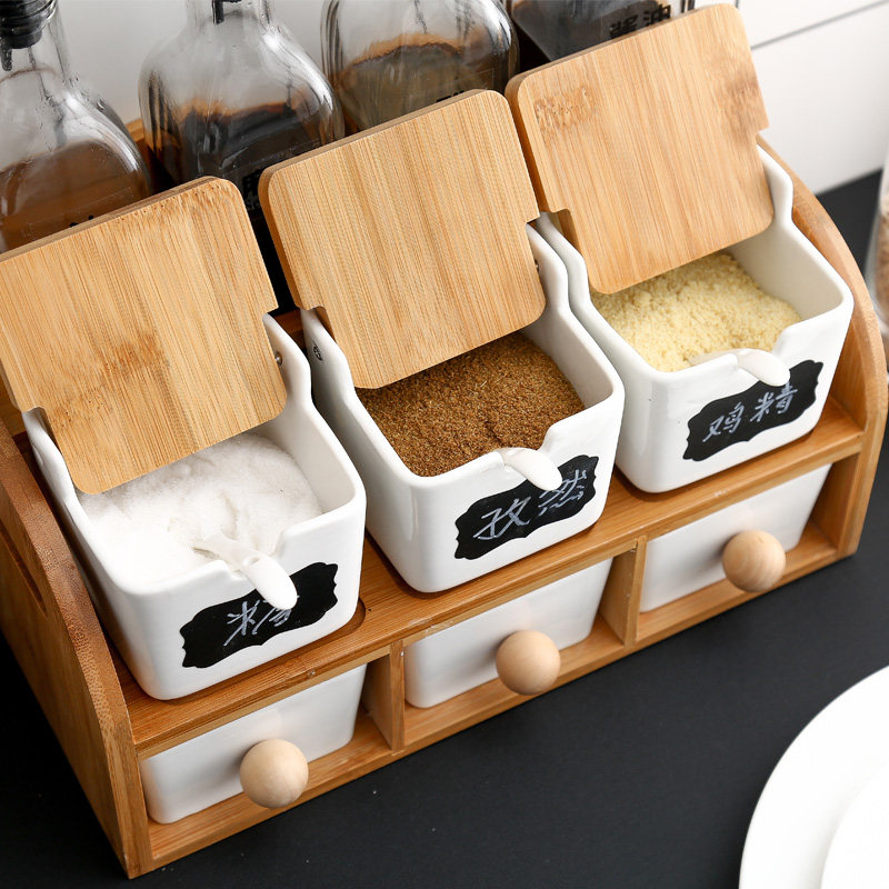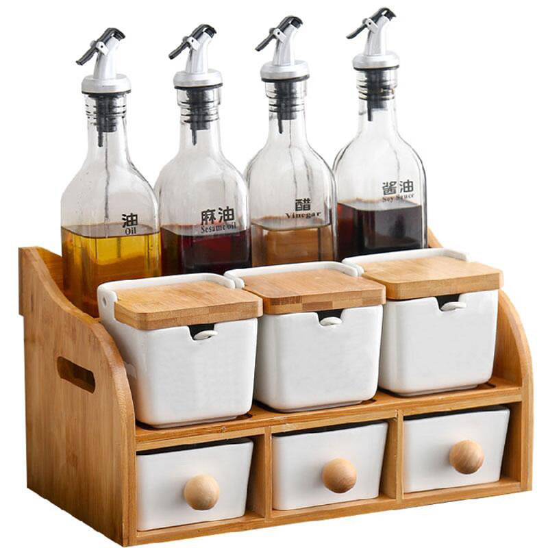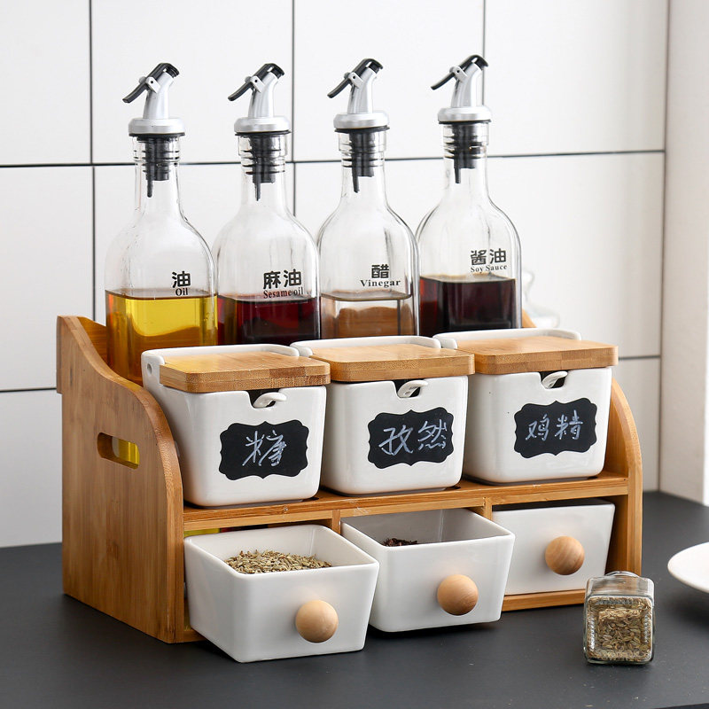 Ceramic seasoning jar seasoning box set home kitchen glass oil bottle combination soy sauce pot seasoning pepper salt jar
