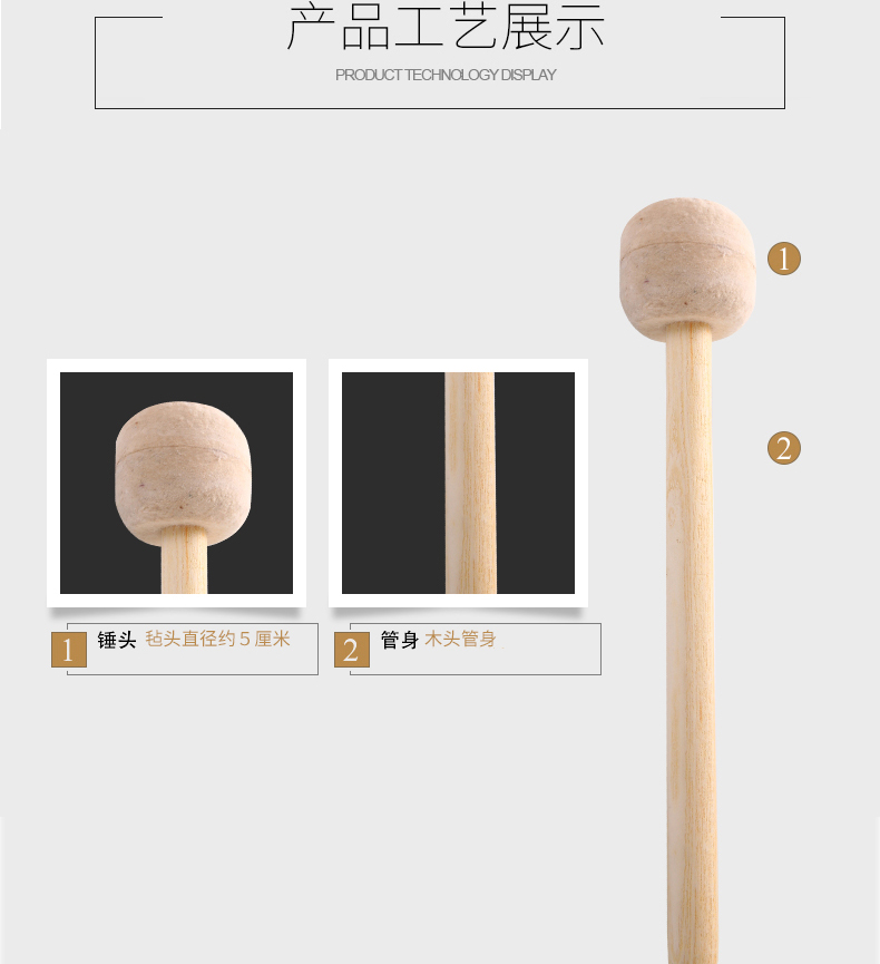 Glamour drum stick felt hammer solid drum drum hammer professional drum hammer children play drum stick stick formula towel