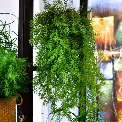 Simulation fern grass fake grass wall hanging fake flower rattan decorative plastic flower hanging flower green plant hanging ceiling wall tropical plant
