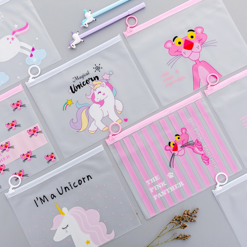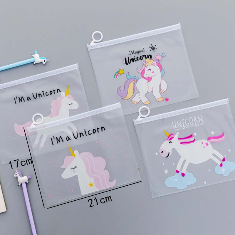 Korean stationery Cute girl heart ring file bag Pen bag Unicorn small fresh transparent storage bag Storage bag
