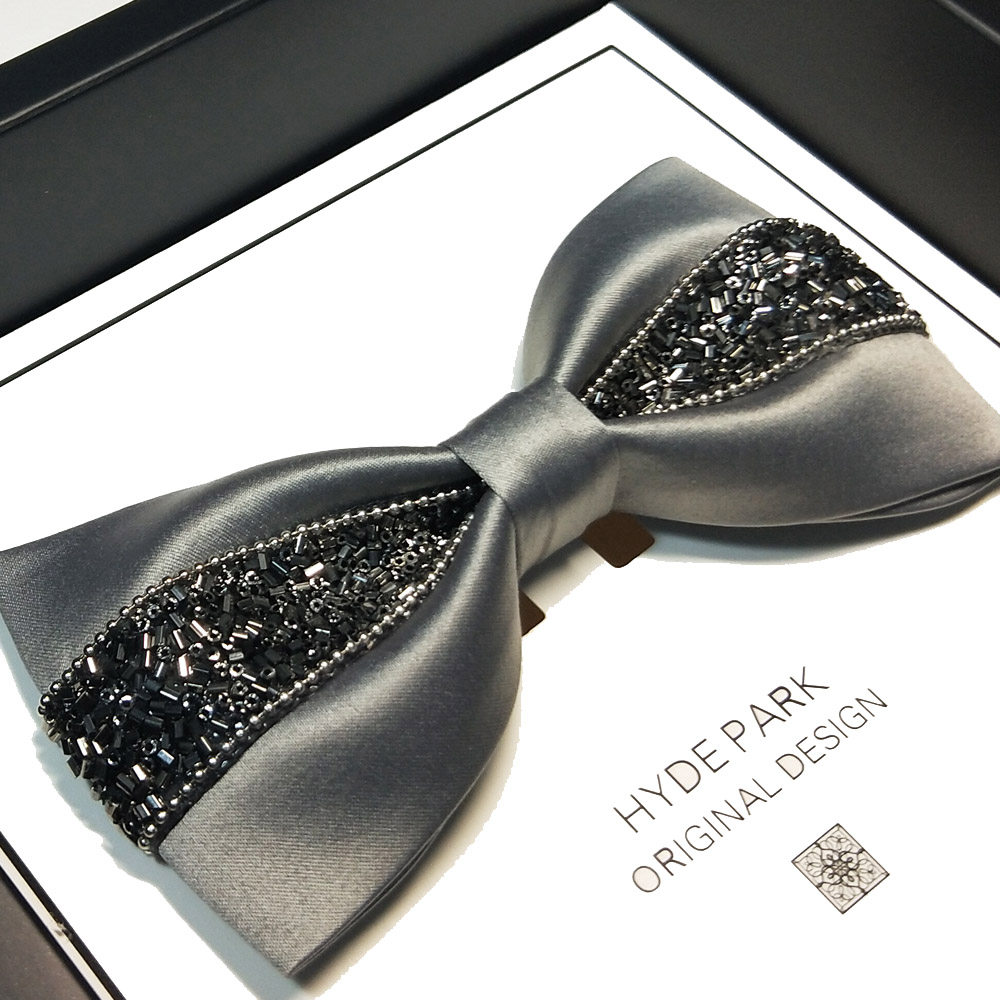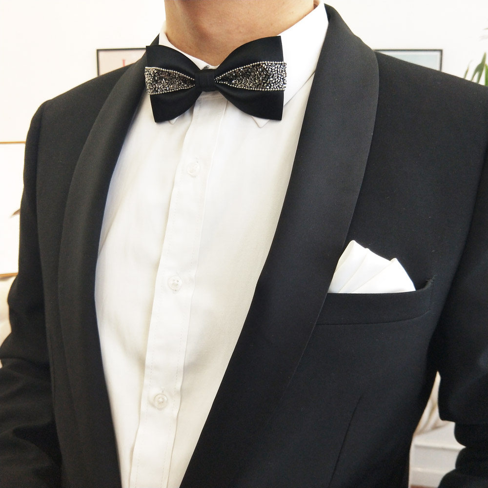 Hyde Park Original sparkling diamond metal Wedding Groom Best man Black Silver suit Formal men's bow tie