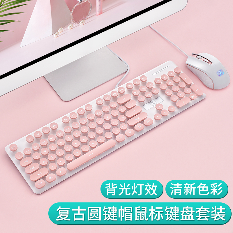 Gray black ice blue cable suspension key cap elegant powder white light cable suspension key cap mint green white light cable suspension key cap mint green white light cable suspension key cap silver white retro ice blue cable keyboard mouse set Girl powder retro round cap white light wired mouse set