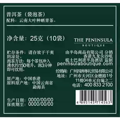 Peninsula Boutique, Hong Kong, China-Pu'er Tea Tea Bags Yunnan Pu'er Tea leaf Tea bags 25g Brewed tea tea bags