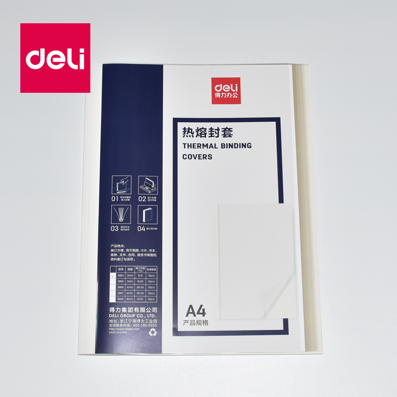 Del hot melt envelope consumables hot melt binding machine special plastic envelope A4 plastic cover 2 3 4 6 8mm binding contract insurance policy document bid cover 10 bags for office use