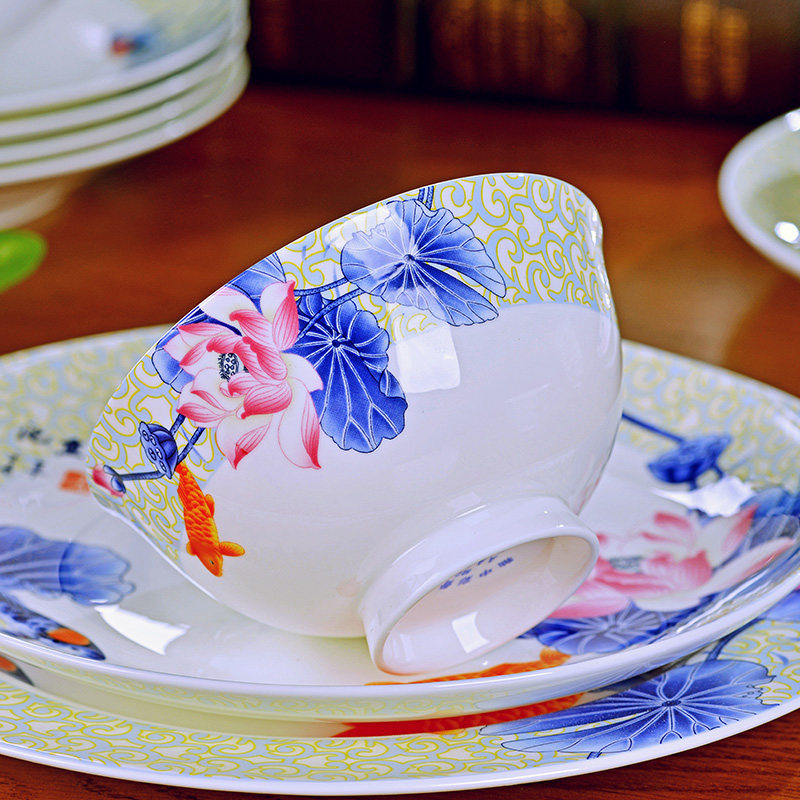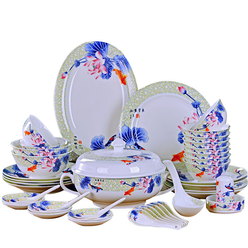 Chiyu Changle High-grade Jingdezhen Glazed 56 Skull Porcelain Tableware Set Full Set of Chinese Ceramic Household Bowls and Plates