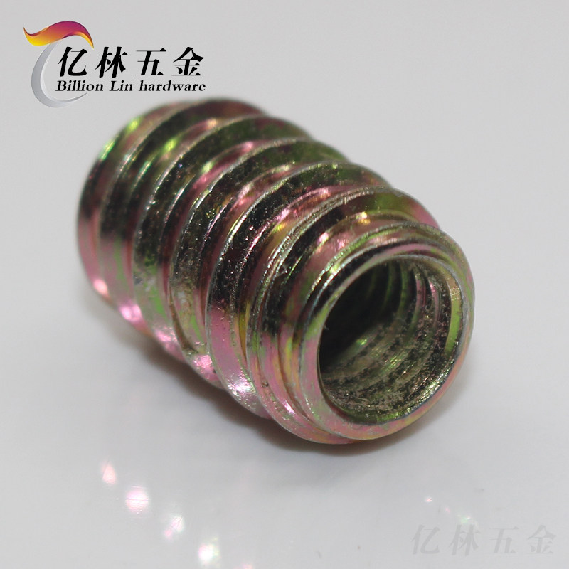 Iron nut No-medium internal and external tooth nut solid wood furniture embedded with nut furniture T-type straight-through screw cap M6M8