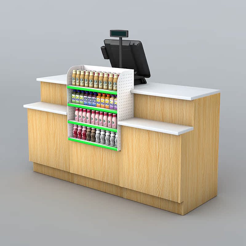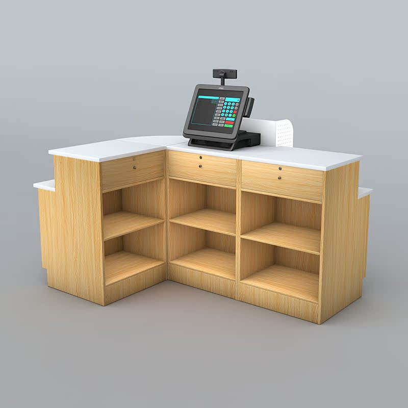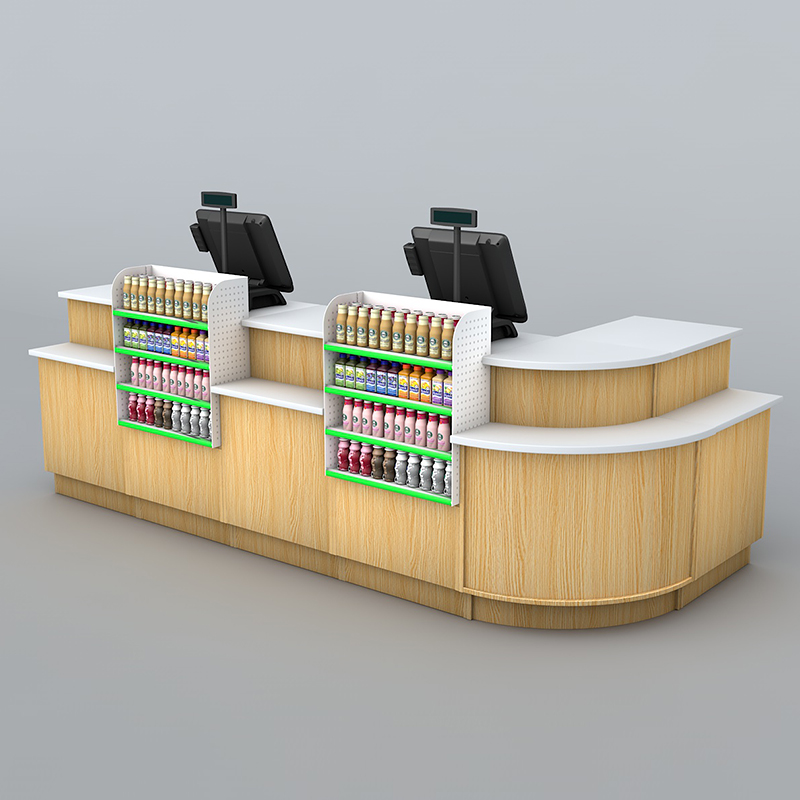 Supermarket cash register counter convenience store pharmacy mother and infant store wooden display counter simple modern arc corner cabinet shelf