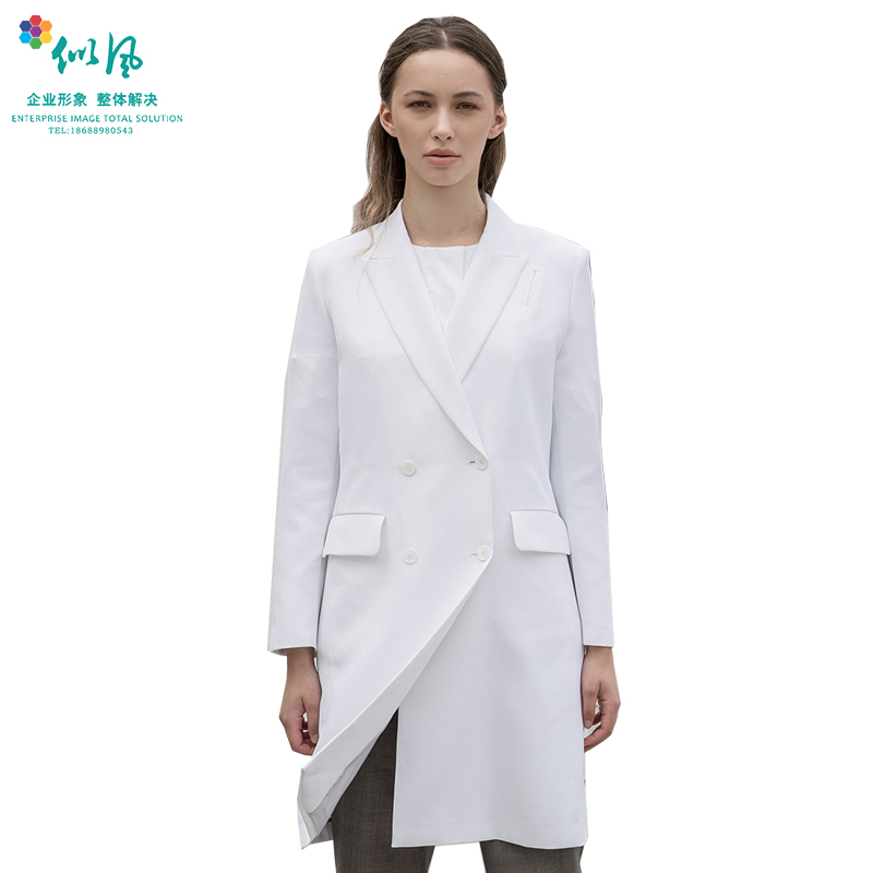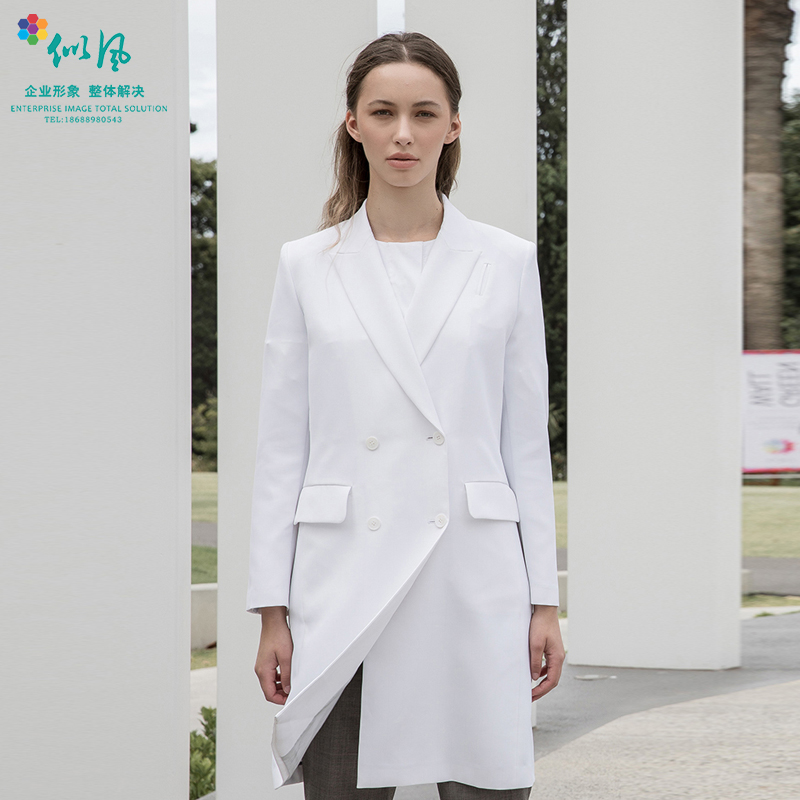 High-end Korean style medical and beauty orthopedic surgeon white coat of white coat with long prints embroidered beautician beautician work clothes