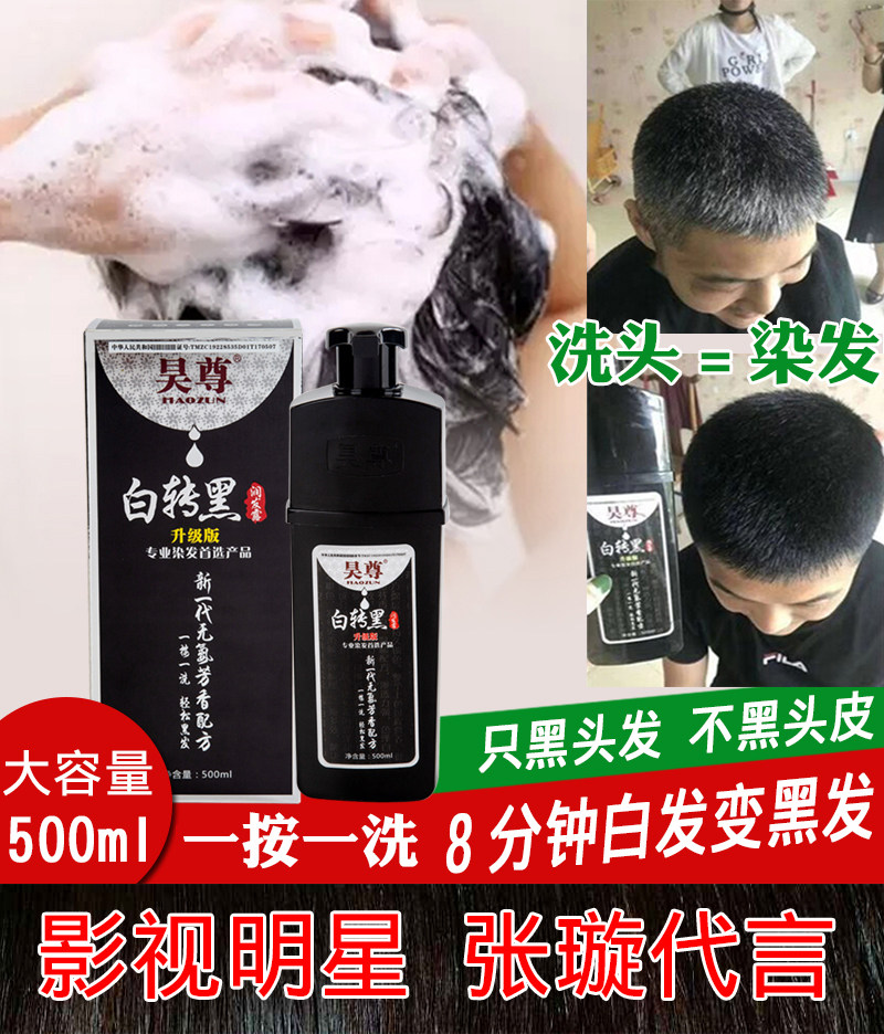 Haozun One wash of black shampoo plant hair dye White turned black yourself at home dyed clear water to dye your hair pure natural black-Taobao