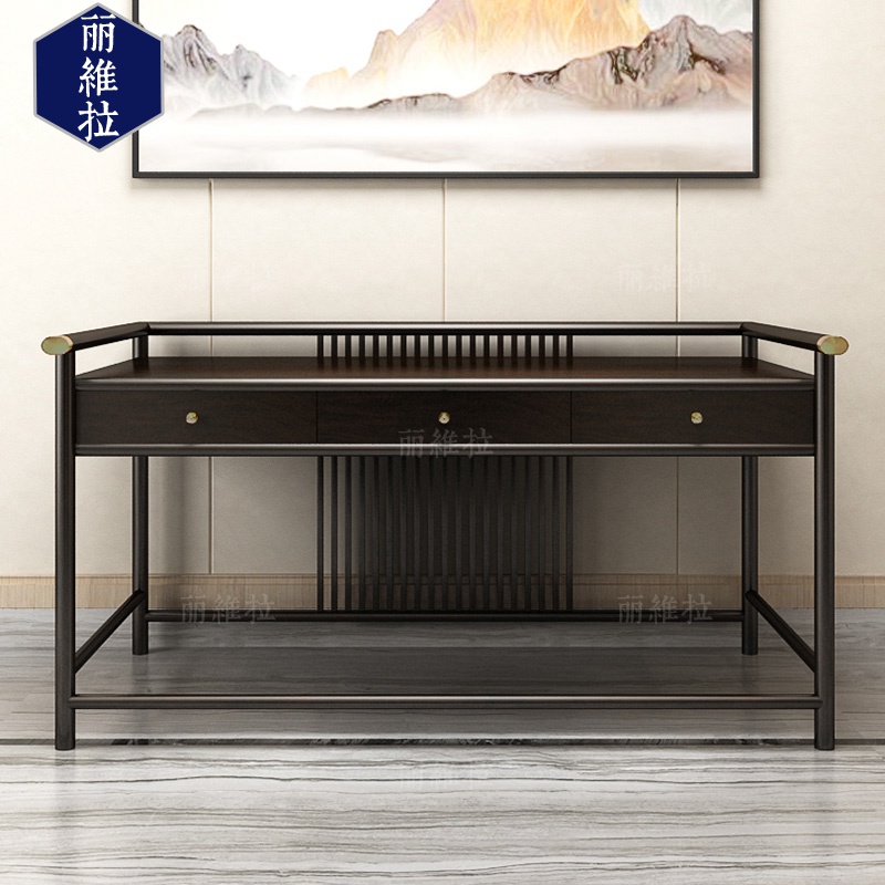 New Chinese-style desk desk computer desk strip case drawing case desk tea room study home solid wood furniture customization