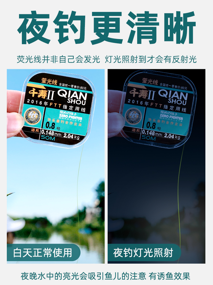 Qianshou 2nd generation fishing line night fishing fluorescent line imported strong tension Taiwan fishing line main line sub-line Taiwan fishing nylon line