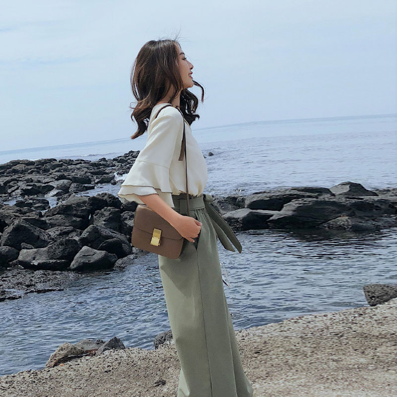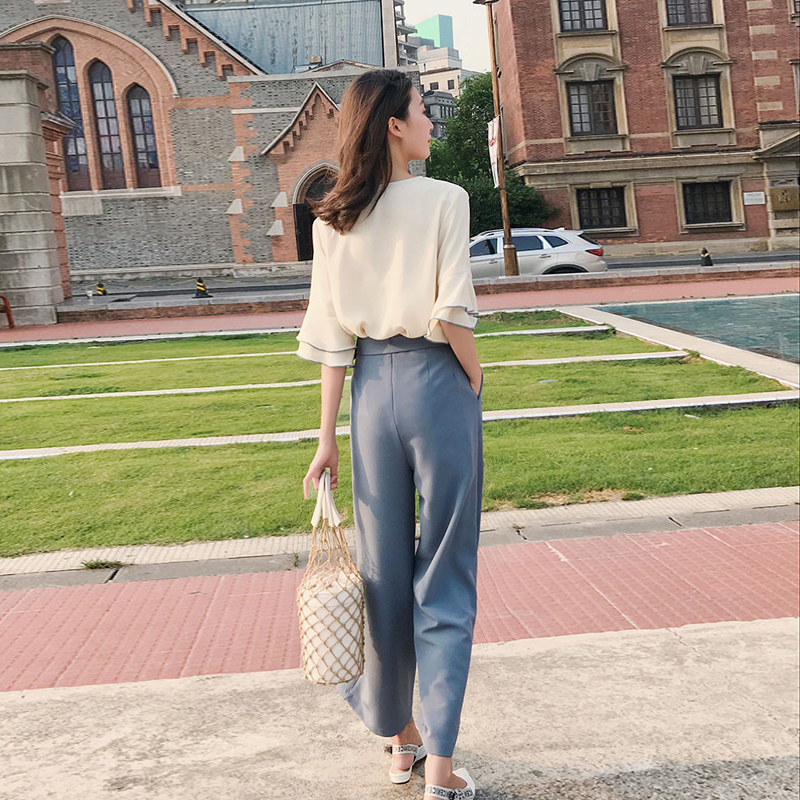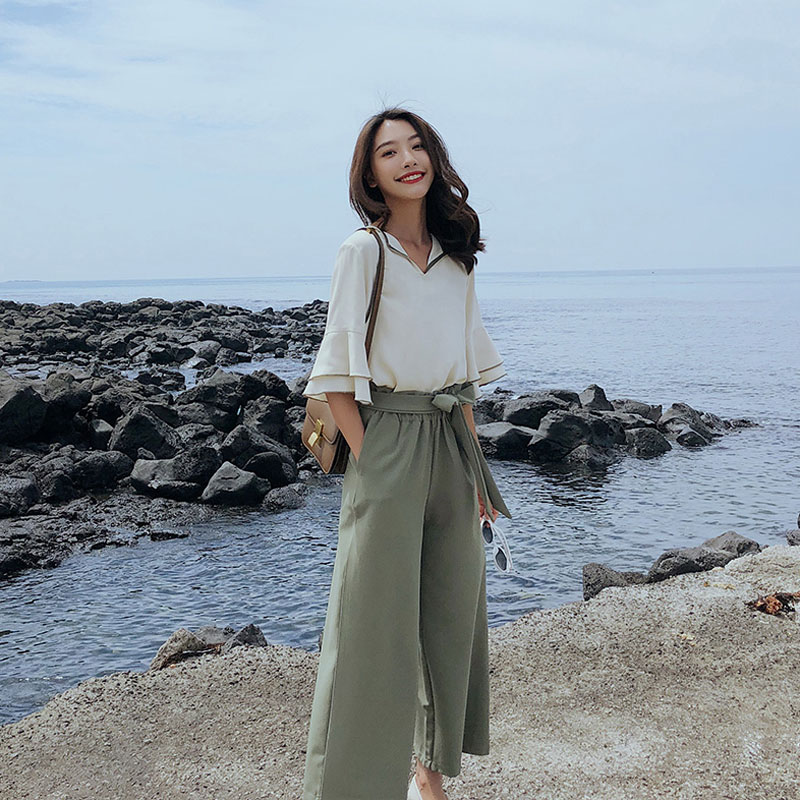 Counter 2022 summer Hong Kong flavor casual fresh Mori girl retro fashion casual chiffon wide-leg pants two-piece suit