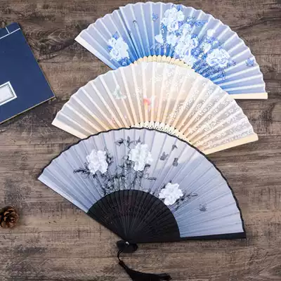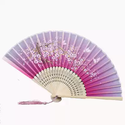 Folding fan Chinese style classical dance fan women's folding fan costume children's Hanfu fan tassel ancient wind small bamboo fan