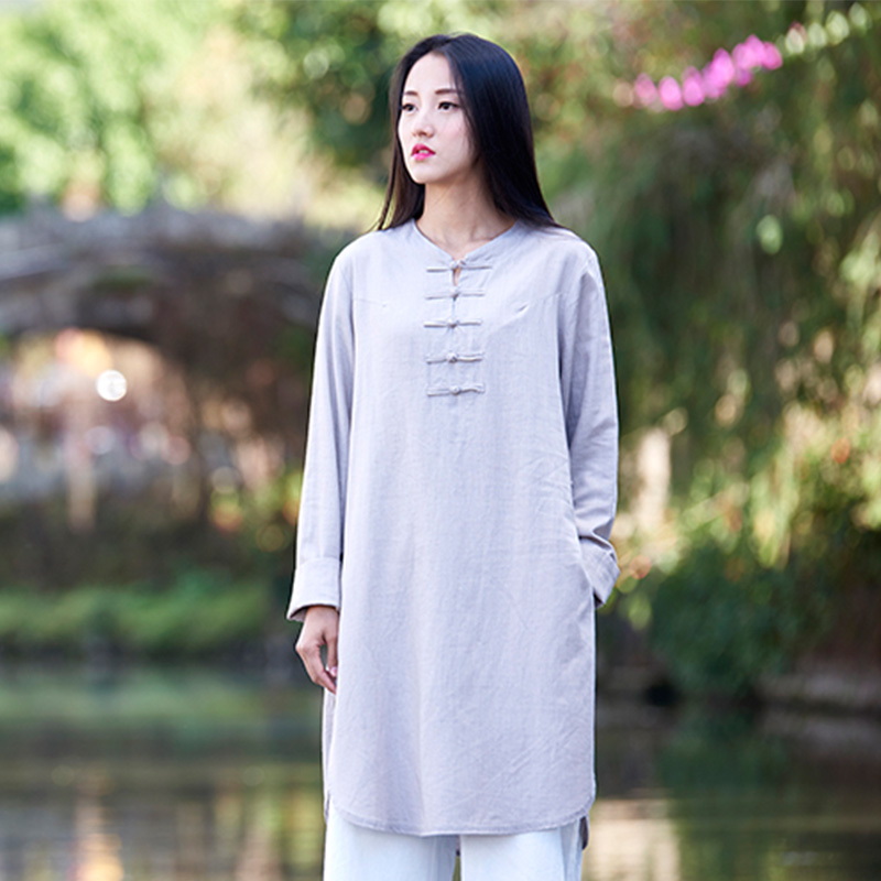 Ethnic style cotton and linen women's Chinese style buttoned top women's retro literary Chinese style Zen tea Zen clothes long-sleeved jacket