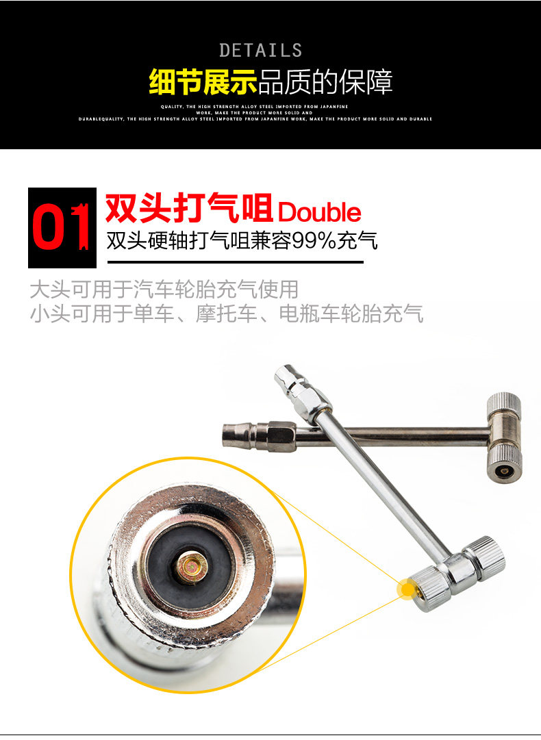 Bicycle electric scooter electric locomotive double head nozzle hose hardcore T-type car inflatable