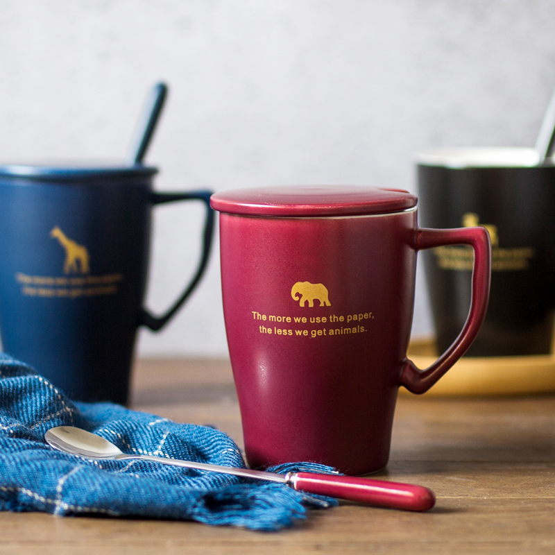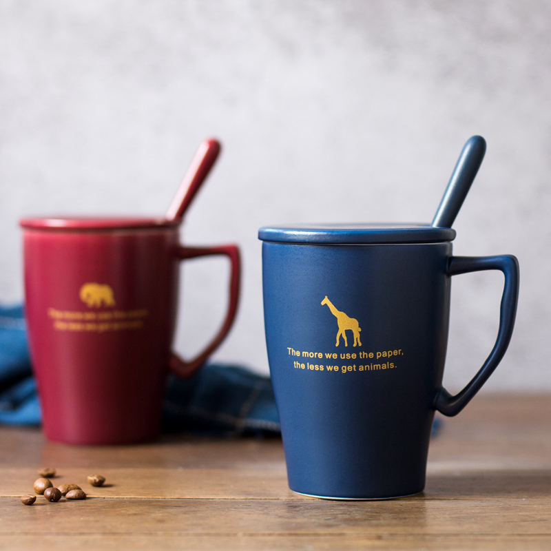 North Eurowind Couple Mark Cup Creative Coffee Water Mug Tea Cup With Lid Spoon Ceramic Retro Office Custom