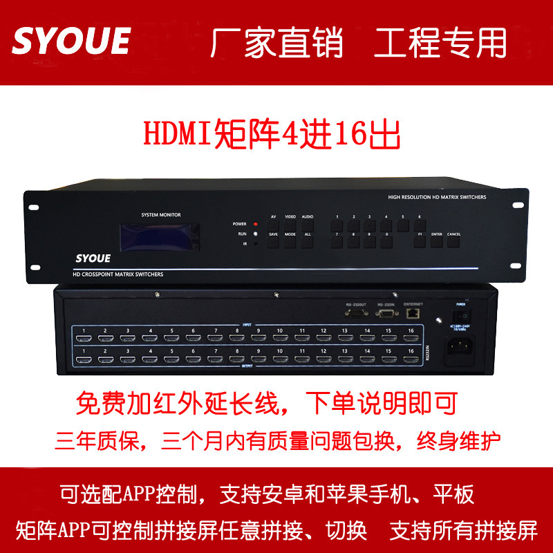 Engineering hdmi matrix 4 in 16 out 4 8 9 12 20 24 32 32 light 3D HDCP high-definition support 4K