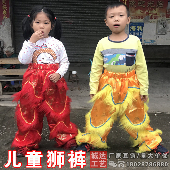 3-16 years old children lion dance pants South lion pants Lion dance pants Foshan lion awake lion pants Beaded cloth pants Red yellow