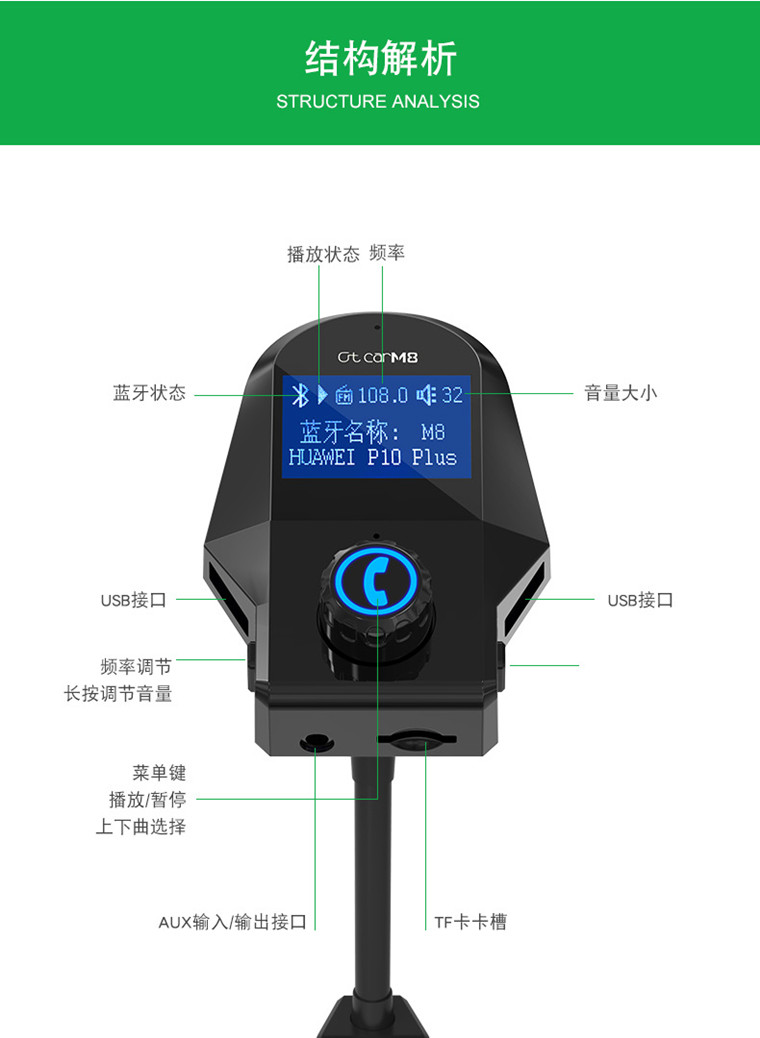 M8 large screen fm car launch card U disk 3 USB charge free call car on Bluetooth mp3 player tide