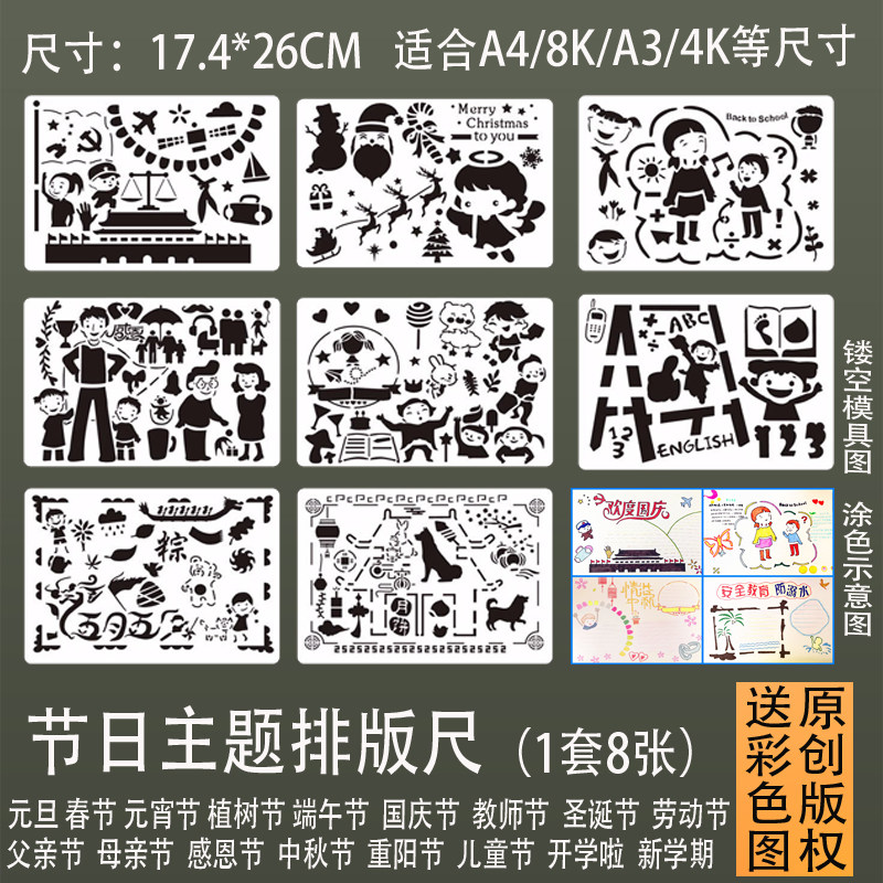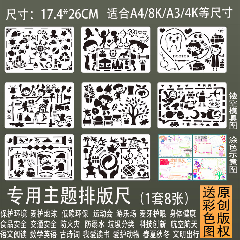 Hand copy newspaper painting hollow template ruler Primary school students hand newspaper tracing template Summer vacation anti-drowning black and white coloring ruler