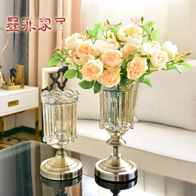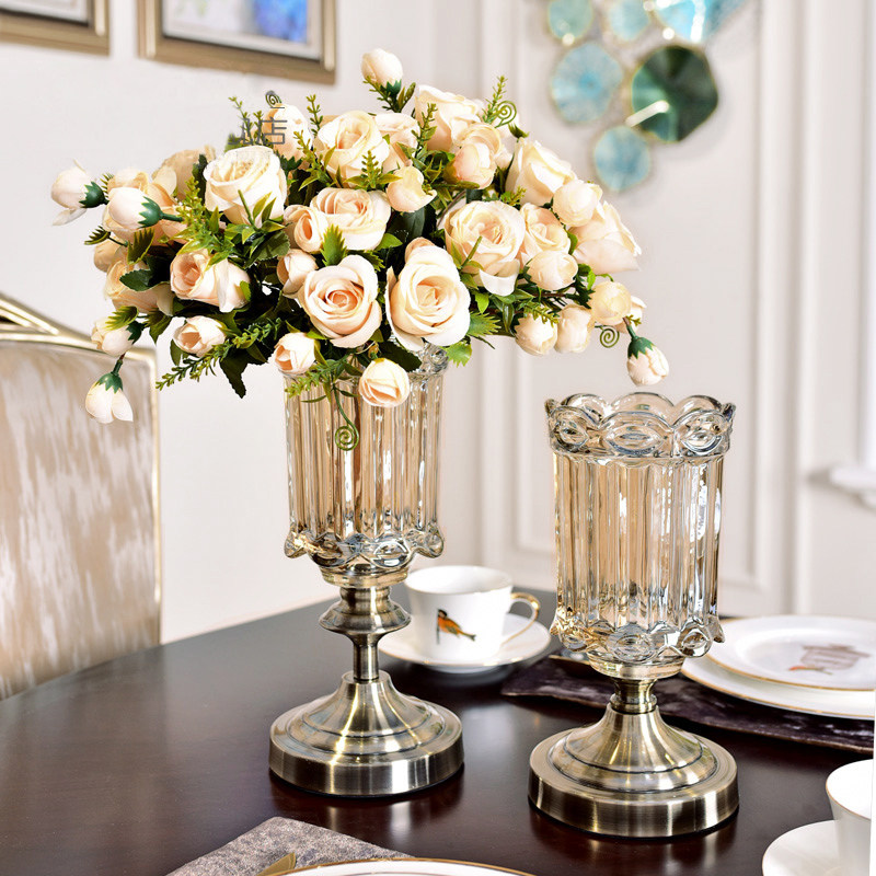 European transparent glass flower bottle Flower arrangement bottle Hydroponic decoration Living room dining table American dried flower Home decoration flower
