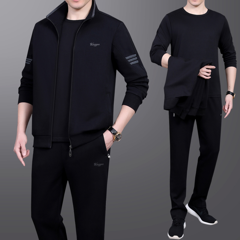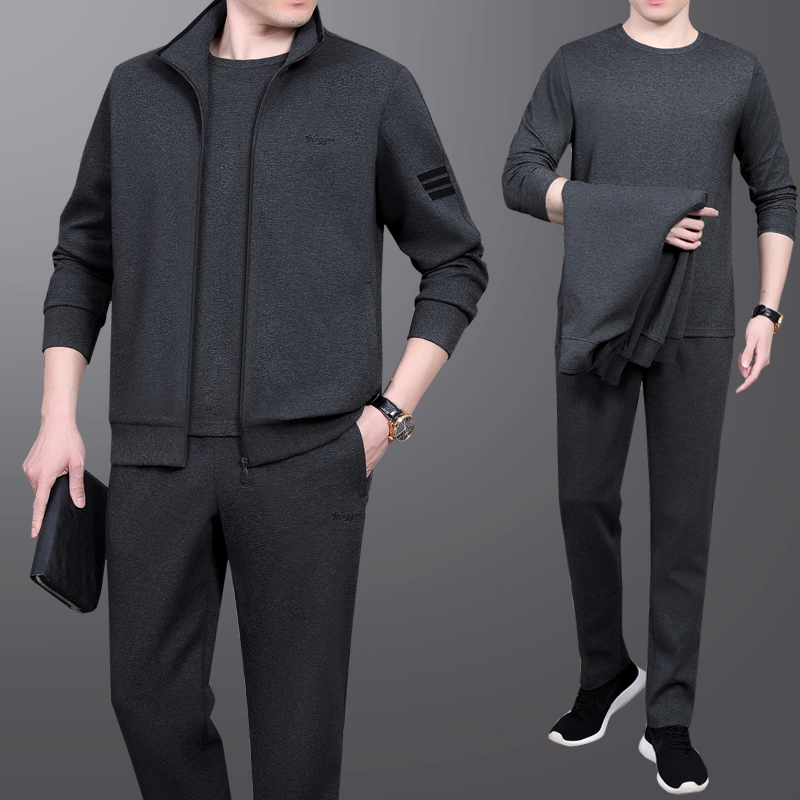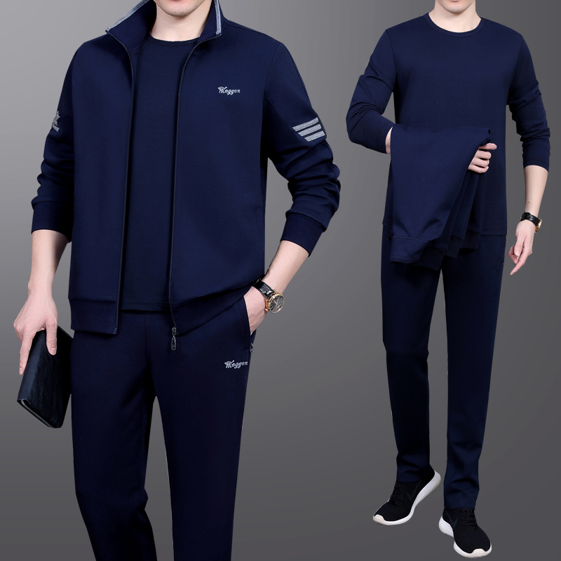 Middle-aged man sports suit men's spring and autumn three-piece set Middle-aged casual clothes men's dad spring 2021 new