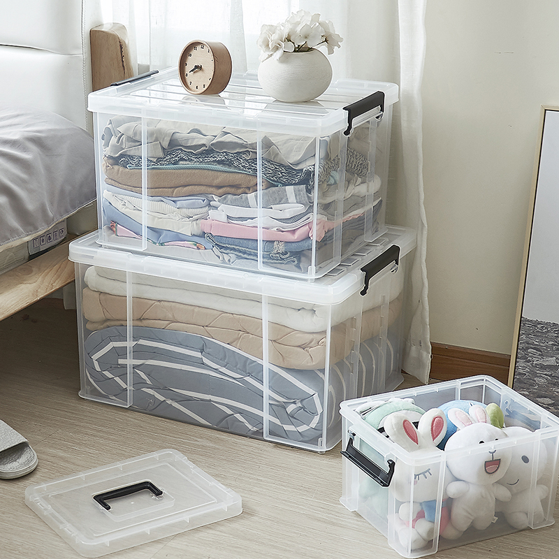 Storage box plastic with lid storage box transparent finishing box extra large toy book household clothes storage box