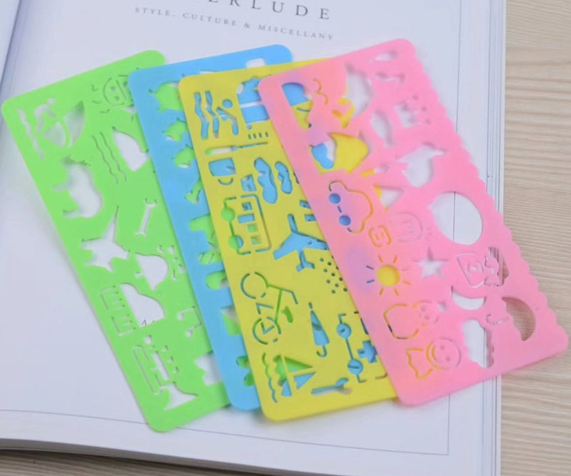 Primary school drawing board children's thousand flower ruler cartoon animal drawing ruler children's template painting ruler set 4 packs