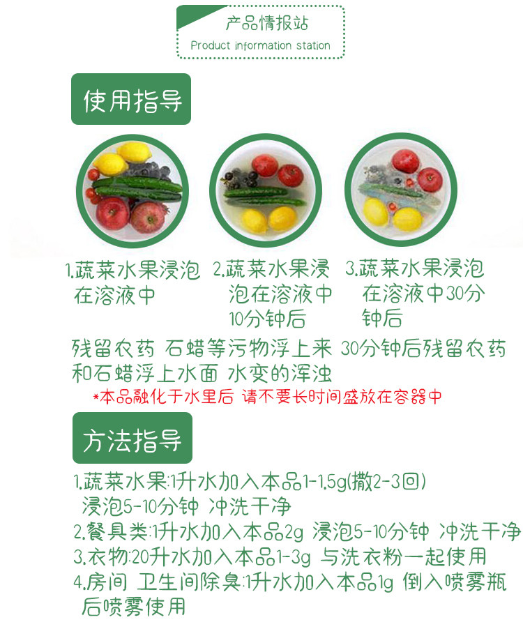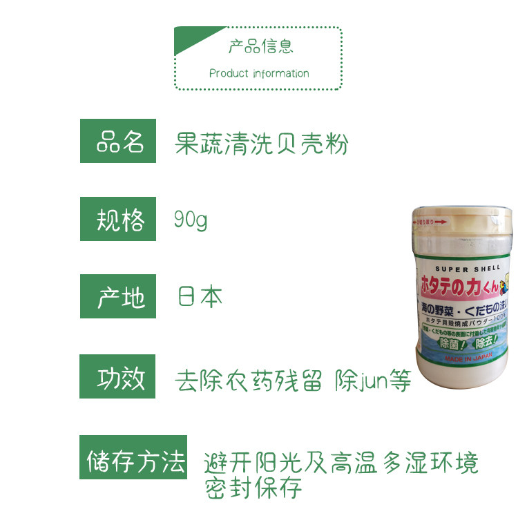Japan original Hanfang fruit and vegetable cleaning vegetable washing powder Baby washing wild vegetables to remove agricultural residues and eliminate bacteria 90g shell powder