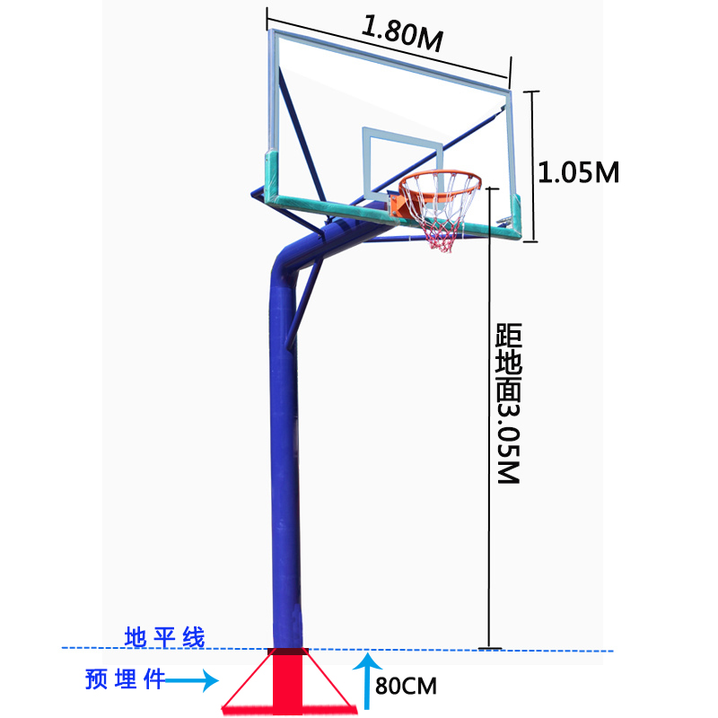 Buried basketball rack with tempered rebounds Adult home community Park Community Square Youth standard basketball rack
