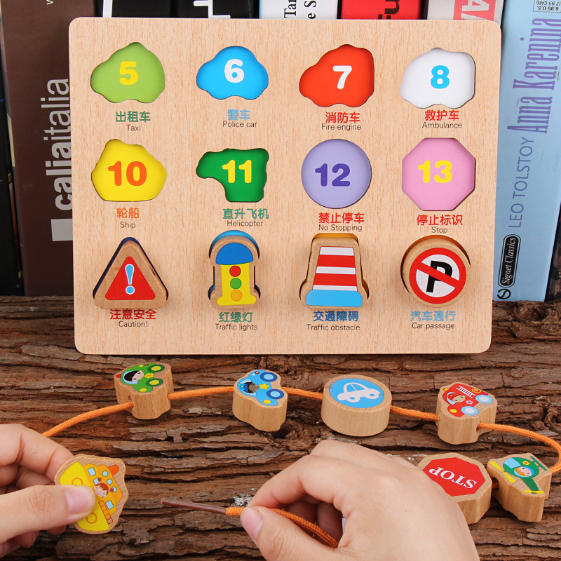 Puzzle string bead toys 1 - 2 - 3 years old baby early teaching intellectually development children wearing bead blocks for boys and girls