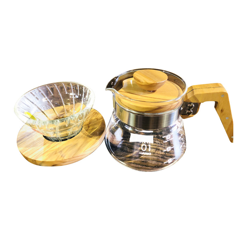 New hario olive wood filter cup hand-brewed coffee filter cup heat-resistant glass sharing pot V60 Home Japan