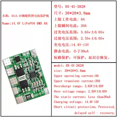 4-string 12 8V32650 lithium iron phosphate battery protection plate anti-overcharge 8A18650 lithium battery protection board